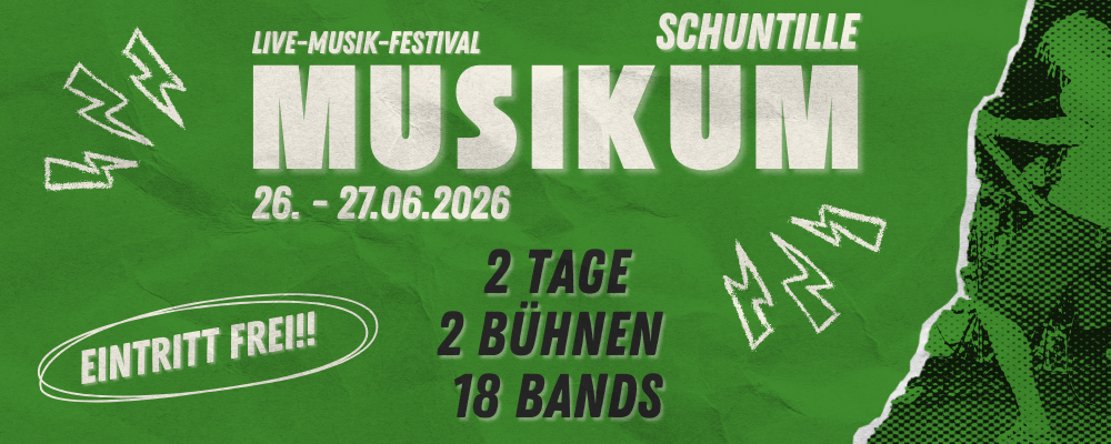Im Sommer veranstaltet der Schuntille e. V. auf dem Gelände des Studentenwohnheims “An der Schunter” das Musikum, ein zweitägiges Musikfestival mit lokalen Bands aus der Region Braunschweig. Dort können neue und altbekannte Bands ihr Können unterbeweisstellen. Bei ausgelassener Stimmung, Getränken und leicher Verpflegung kann man hier nach einer harten Arbeitswoche entspannt den Abend ausklingen lassen. Das Musikum findet für gewöhnlich in der zweiten Hälfte des Juni’s statt.